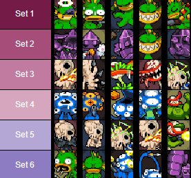 This example image is from the daily sheet, and can be used to illustrate how basic leveling works in any run. The player starts from Set 1 and any time they level up, they advance to the next set. (Betas start from Set 0, which is relevant for daily/weeklies).